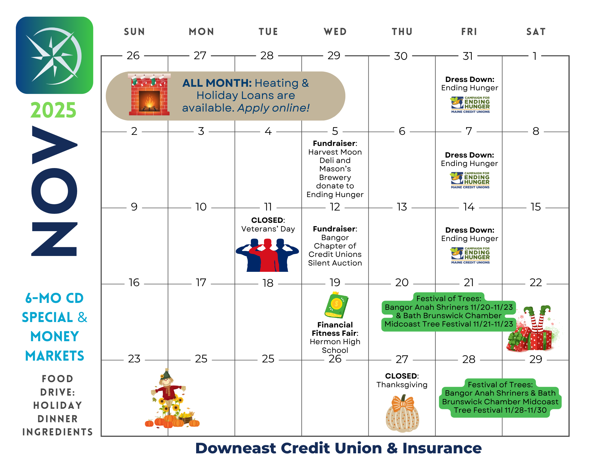 We are always looking for ways to support our communities, and to enhance the lives of our Members & Team Members. Below is an outline of activities and events happening this month!